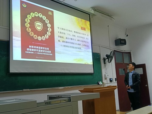 为深入学习习近平总书记围绕总体国家安全观发表的一系列重要论述和重要讲话精神,引导广大学生牢固树立和认真贯彻总体国家安全观,bv伟德国际1946学生第三党支部于4月17日晚在教育大楼1J12开展了国家安全主题宣讲活动。本次活动由研究生党员严鹏主讲,21级部分学生参加。