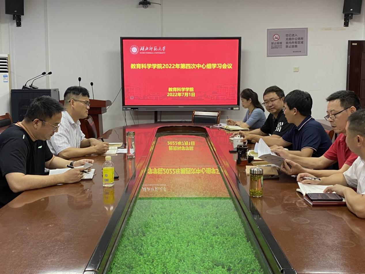 2022年7月1日下午,教科院党总支在教育大楼1317A召开理论学习中心组2022年第四次学习会,集中学习了习近平总书记在湖北省武汉市和四川省考察时重要讲话精神、中国共产党湖北省第十二次代表大会会议精神等相关材料。会议由院党总支书记徐明波主持,学院全体班子成员和党政办主任参加了会议。