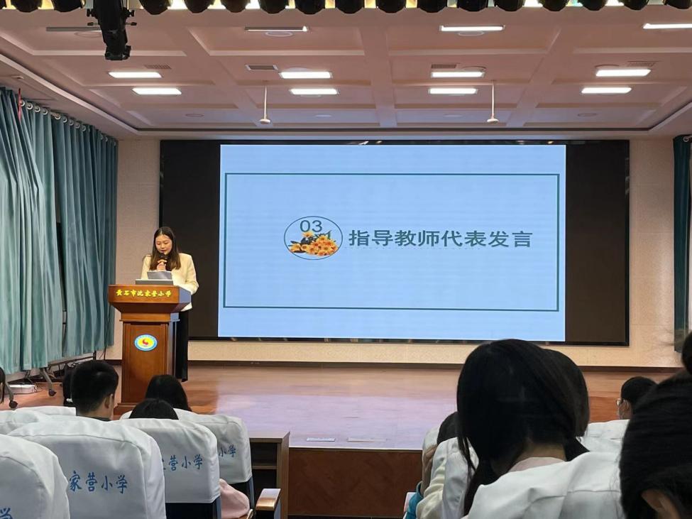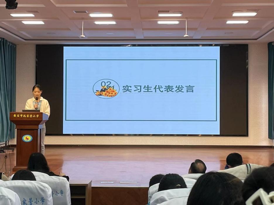随后,实习指导教师代表程光苗老师肯定了实习生的勤劳奋进,同时她也指出从学生到老师的转变,一定不是那么容易的,希望实习生们在困难和挫折中吸取宝贵的经验,实习不仅是教学技能的实习,更是育人精神和教育思想的实习。