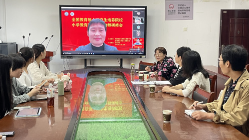 2022年11月12日,由中国学位与研究生教育学会举办、河南大学承办的全国教育硕士研究生培养院校小学教育领域指导教师研究会以腾讯会议方式进行。我院小学教育领域方向负责人邓李梅教授在教育大楼1317会议室主持了本次会议,出席会议的有刘学利、黄娅、赵幸、王文和陶丽等老师和全体小学教育专业硕士研究生。