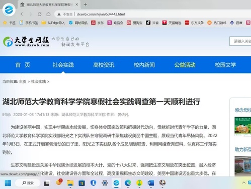 至此,本次寒期社会实践调查活动正式拉开了帷幕。通过此次社会实践调查活动,同学们不仅切实地体会到调研的魅力,还加深了对建设美丽中国制度保障和生态文明建设的认识。(通讯员:段小芳)