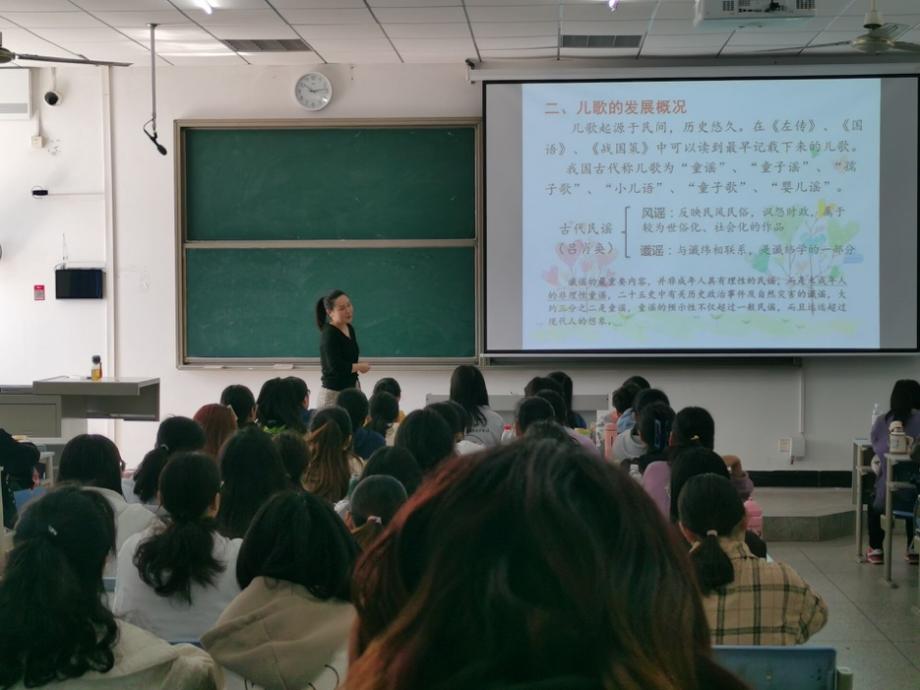 2023年3月14日上午,bv伟德国际1946在科技大楼9408进行示范课观摩活动。本次主讲教师是小学教育系朱培芳老师,主讲内容为《儿童文学》中的《儿歌》部分。学校督导张海丽教授、崔波副院长和学院部分教师参与了听课。