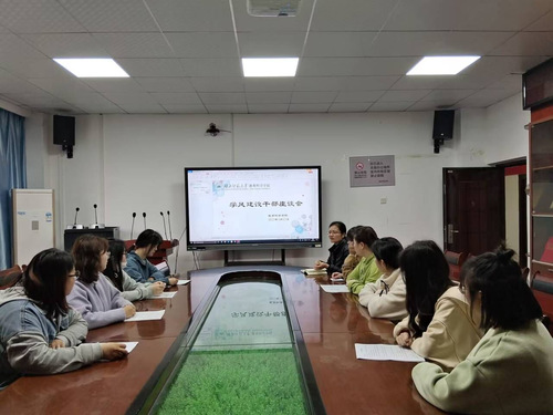 会议伊始,刘丽娟老师简要点明了此次会议的目的,强调了学风建设的重要性。随后,参会成员纷纷踊跃发言,他们发表了自己对学风建设的建议并提出了一些可举办的活动,为学院学风建设积极贡献了自己的一份力量。最后,刘丽娟老师综合了所有干部的建议,并总结出了可行的活动,同时鼓励干部们积极创新,继续加强学风建设。