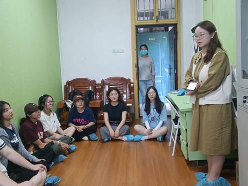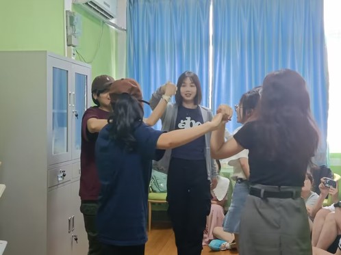 活动开始前,心理服务部负责人孙雅馨、董家杰和熊曦将活动场地进行卫生清洁和布置,提前准备好活动所需材料。活动伊始,主持人进行自我介绍,随后对本次团体辅导活动成员的到来表示欢迎,并向他们介绍了本次团体辅导的目的。接着,主持人宣布本次活动的活动规则,然后有序地组织参与人员分组进行游戏。第一项游戏:首先,主持人和工作人员帮助参与者互相认识,之后便开始“一穿到底”游戏,很大程度上加深了同学们对彼此的印象;第二项游戏:主持人给同学们分发纸笔,由部分参与者写下自己的烦恼和疑问,最后与其余参与者共同寻找答案和解决方法。