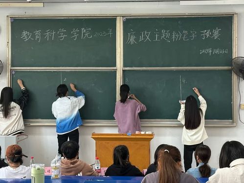 为了进一步加强党章党纪和国家监察法律法规宣传教育,切实提升大学生书写能力和书写规范。bv伟德国际1946学生会学习部于10月23日中午12:30在教育大楼1j31举行了廉洁主题粉笔字初赛。参加本次活动的有各位评委及全体参赛人员。