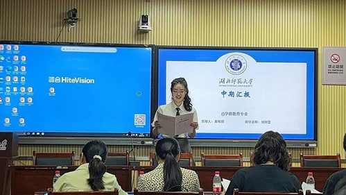 此次学前教育专业硕士研究生中期考核共有25名研究生参加,分成两个小组进行,1317A教室由秦振飙、桂勇、李璐、岳鹏飞等教师组成考核小组,1316教室由刘妍慧、谭金凤、陈菲菲、吴娜等老师组成考核小组。学生通过PPT,依次汇报思想、学习、科研和论文完成进度等方面的情况,考核小组对研究生逐个进行评议,重点对学生的论文研究情况进行指导。