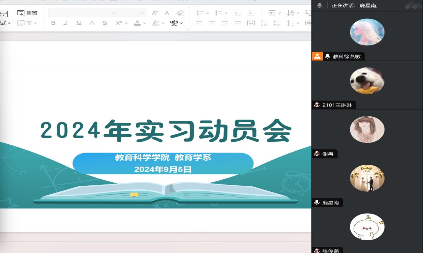 首先,徐燕敏老师向同学们介绍了实习相关的纪律和事项,比如实习态度要端正,认真完成实习学校布置的任务。此外,同学们还需积极参与课堂观摩,独立完成至少三至五篇教案的撰写工作,以锻炼和提升自己的教学设计能力。同时,参与班主任实习和课外活动也是实习的重要组成部分,这不仅能够丰富同学们的实习经历,还能在实践中学习到更多的教育管理技能。老师还特别提醒同学们,在活动期间要做好详细的记录,以便于日后反思和总结。