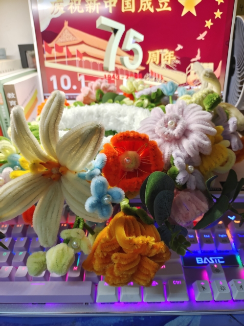 活动开始,同学们热情高涨,积极地选用折纸、黏土等丰富多样的道具,精心构思并雕琢自己的作品。无论是用五彩斑斓的折纸折出的象征祖国繁荣昌盛的花朵与飞鸟,还是用黏土捏制出的祖国壮丽山河的微缩景观,每一件参赛作品都具有独特的魅力。作品内容丰富多样,主题紧紧围绕庆祝祖国七十五周年华诞,积极向上的同时又充满了别出心裁的创意。从巧妙的构思到精细的制作,兼具了极强的操作性与赏心悦目的观赏性。同学们在创作过程中,将对祖国的热爱、对民族的自豪、对未来的憧憬都融入其中,每一个细节、每一处纹理都凝聚着作者对祖国的深情与敬意。参赛作品经过学习部选拔,五份作品进入复赛。