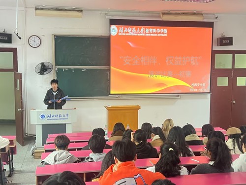 比赛伊始,由主持人杨洋为大家介绍比赛流程,并对各位的到来表示诚挚的感谢。比赛过程中,选手们依次上台进行演讲。选手们在演讲中各展风采,他们从多维度深入探讨了“安全相伴,权益护航”的主题。一些选手着眼于校园安全与学生权益,而另一些则聚焦于社会安全隐患及个人合法权益的维护。他们的主题鲜明、深刻,演讲内容积极向上,充满真挚情感,深刻诠释了安全与权益的重要性。同时,三位评委用心聆听他们的演讲内容,观察选手们的表现,并根据选手的表现打出自己心目中的分数。接着,刘晓浅从仪容仪表、语言表达、语速、声调、PPT制作以及内容是否符合主题等方面对选手们进行点评。最后,根据评委们的打分,由主持人杨洋公布进入决赛的前四名选手,他们分别是沈彦彤、熊梦灵、余晚婷、朱春醒。