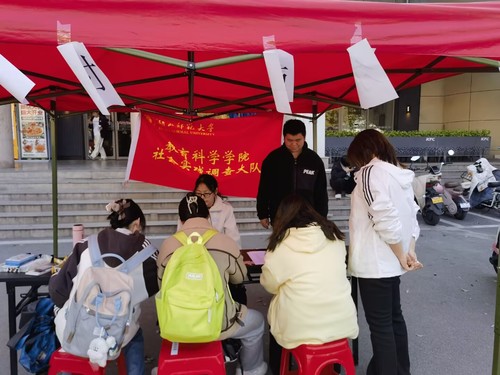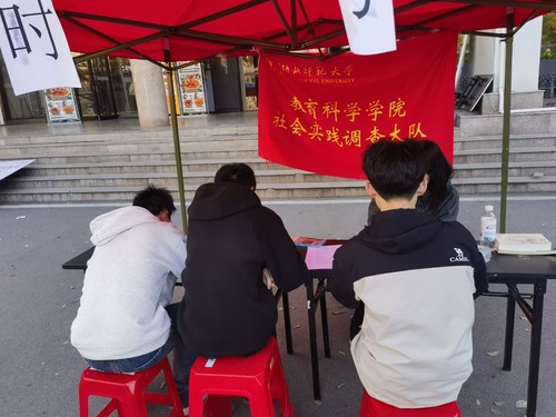 活动伊始,成员们提前到达场地处进行摆点活动布置,在活动过程中,工作人员发动同学参与问卷调查,认真指导同学们填写问卷解答疑惑。除此以外还为其普及讲解AI相关知识,帮助同学们深入了解AI技术。最后,成员们回收整理问卷,对大学生AI使用情况进行了分析和讨论,活动顺利结束。