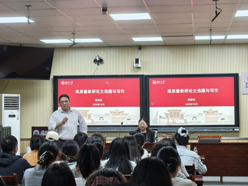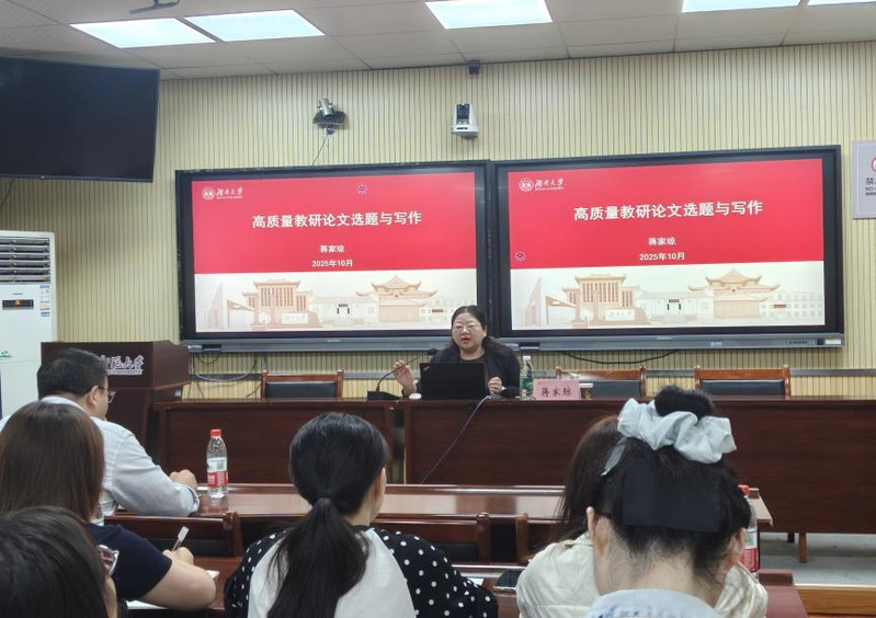 为进一步提高我院师生的论文写作水平、营造更加积极活跃的学术氛围,10月17日下午,我院特邀湖南大学教育科学研究院博士生导师、《大学教育科学》主编蒋家琼教授在教育大楼1316A报告厅,作了题为《高质量教育科研论文选题与写作》的学术讲座。讲座由朱浩院长主持,我院教师及研究生100余人参会。