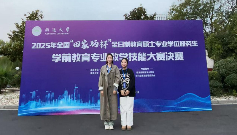 近日,2025年全国“田家炳杯”全日制教育硕士专业学位研究生学前教育专业教学技能大赛决赛在南通大学圆满落幕。我院研究生在此项全国性高水平赛事中凭借扎实的专业功底和出色的教学技能荣获奖项,展现了我院教育硕士培养的卓越成果。