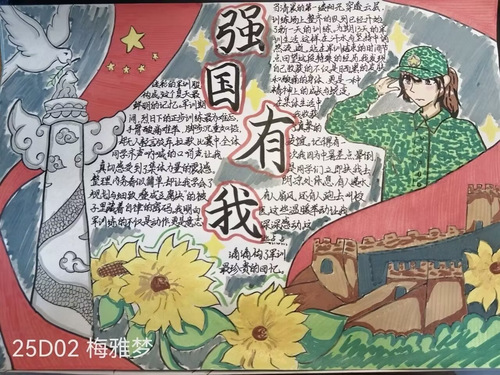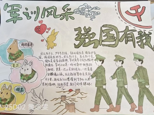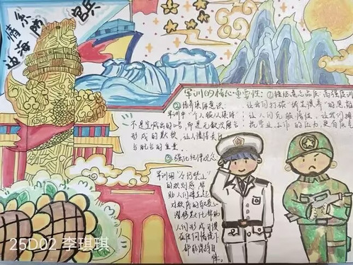 在活动中,同学们以画笔为媒,将军训中的点滴场景转化为生动画面,诠释了自己对军训的理解和感悟。这些作品风格多样,既展现了新生扎实的艺术素养,更折射出他们在军训中磨砺意志、锤炼品格的成长轨迹。经过微信公众号推文的公开投票,最终评选出以下获奖者:一等奖2505李香凝;二等奖25D02李琪琪,25D02梅雅梦;三等奖25D02黄念雯,25D03魏雅睿。