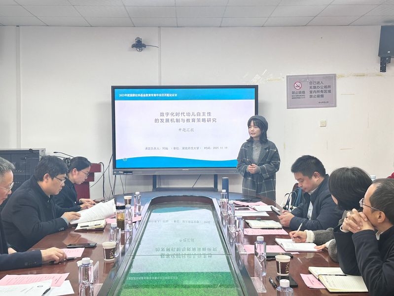 2025年11月19日,由何灿博士主持的2025年度国家社会科学基金教育学青年项目“数字化时代幼儿自主性的发展机制与教育策略研究”开题论证会在伟德victor1946教育大楼1317A顺利召开。华中师范大学教育学院涂艳国教授担任专家评议组组长,专家评议组成员有华中师范大学教育学院田友谊教授、李卉副教授、黄石市教育科学研究院程带娣教研员等,伟德victor1946科学研究发展院副院长冯伟林、教科院班子成员、课题组成员、相关专业教师和部分研究生40多人参加会议。bv伟德国际1946副院长崔波主持活动。
