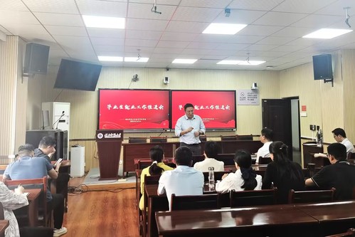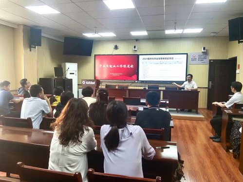 党委副书记刘广兵传达了学校就业工作相关会议精神,通报了2024届本科毕业生整体就业情况,并针对目前学生面临的就业困难,为班主任有力有效指导学生就业工作提供建议参考。