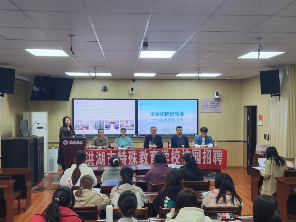 为进一步强化就业精准服务,促进毕业生高质量充分就业,bv伟德国际1946组织策划“特别的岗位 “职”给特定的你”——特殊教育专业系列招聘活动。3月11日,bv伟德国际1946在教育大楼1316会议室举行本次系列活动的首场招聘宣讲会。本次活动邀请到洪湖市特殊教育学校的领导老师一行来校进行招聘宣讲,招生与就业工作处副处长宋娜,学院党委副书记刘广兵,特教系教师张明平,特殊教育专业毕业生参加活动。