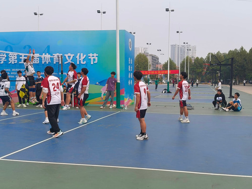 比赛开始,各队队员迅速进入状态。发球手高高抛球,用力一挥,排球飞向对方场地。赛场上,球员们在网前高高跃起,展开激烈的扣杀,每一次击球都伴随着观众的欢呼。他们的发球精准有力,传球配合默契,救球时更是奋不顾身。比赛过程中,比分交替上升,赛场上氛围紧张。每一局比赛都是智慧与力量的较量,队员们也展现出良好的团队协作精神。场外的观众也被这热烈的氛围感染,欢呼声、加油声此起彼伏,为赛场增添了别样的色彩。最终,教科院男排队以2:0的比分赢得比赛。
