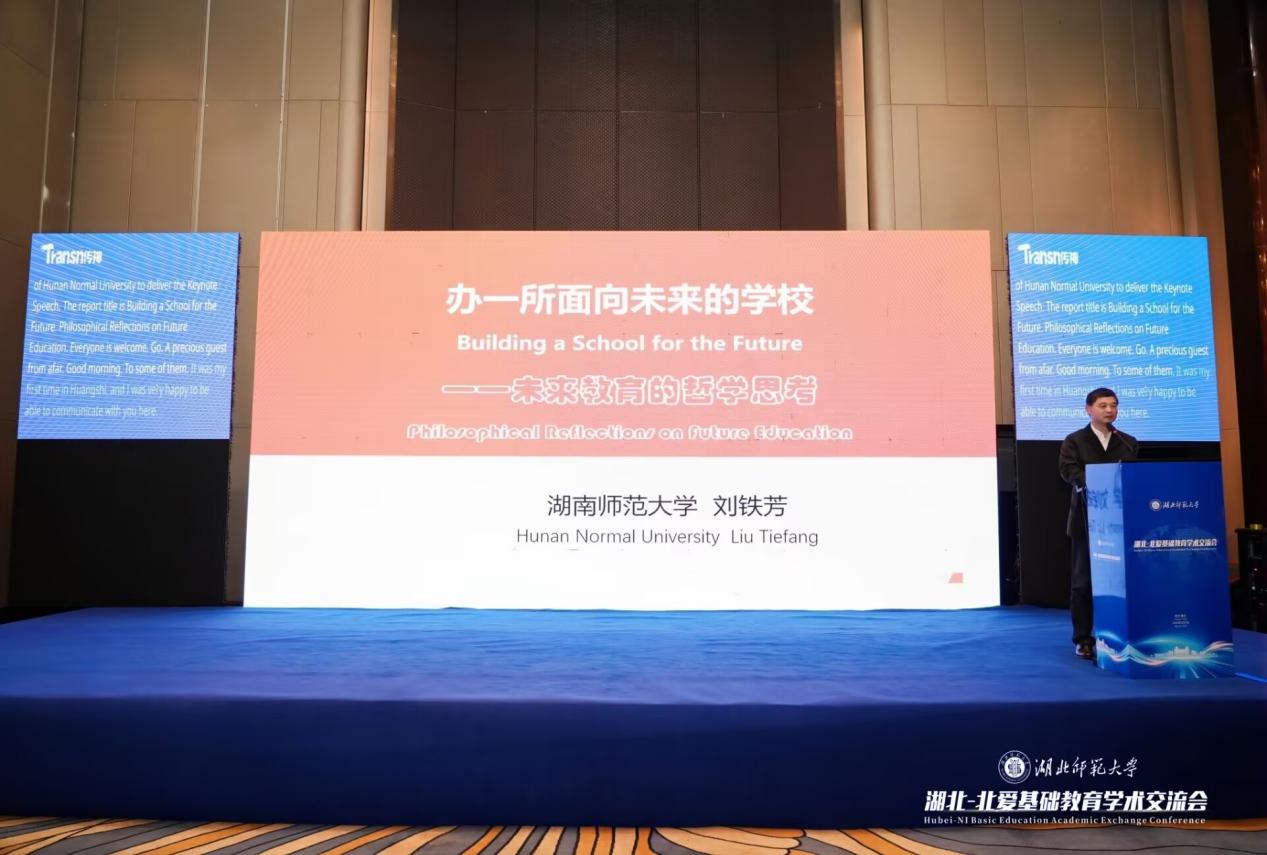 湖南师范大学刘铁芳教授在主旨报告中以“办一所面向未来的学校——未来教育的哲学思考”为题,从教育哲学视角探讨了未来学校的形态与发展方向。北爱尔兰教育部辛西娅·库瑞围绕“转型教学与学习:北爱尔兰教育卓越的策略”分享了北爱尔兰在教育改革中的经验与实践。华中师范大学雷万鹏教授以“人口流动与乡村教育发展”为题,分析了人口流动背景下我国乡村教育面临的机遇与挑战。报告间隙,我校音乐舞蹈学院、外国语学院学生带来实习实践成果展示与经典英文诗歌朗诵,以艺术与语言为载体营造浓厚的人文交流氛围。